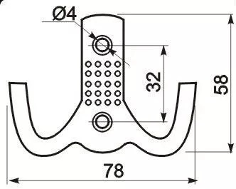 Крючок мебельный 2-х рожковый, L-58мм, хром