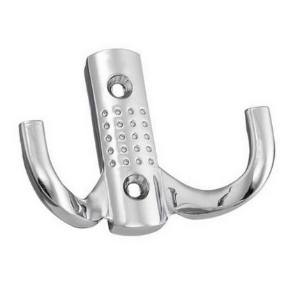 Крючок мебельный 2-х рожковый, L-58мм, глянцевый никель используются в шкафах для удобства размещения одежды, вещей и сумок в шкафах и гардеробных.