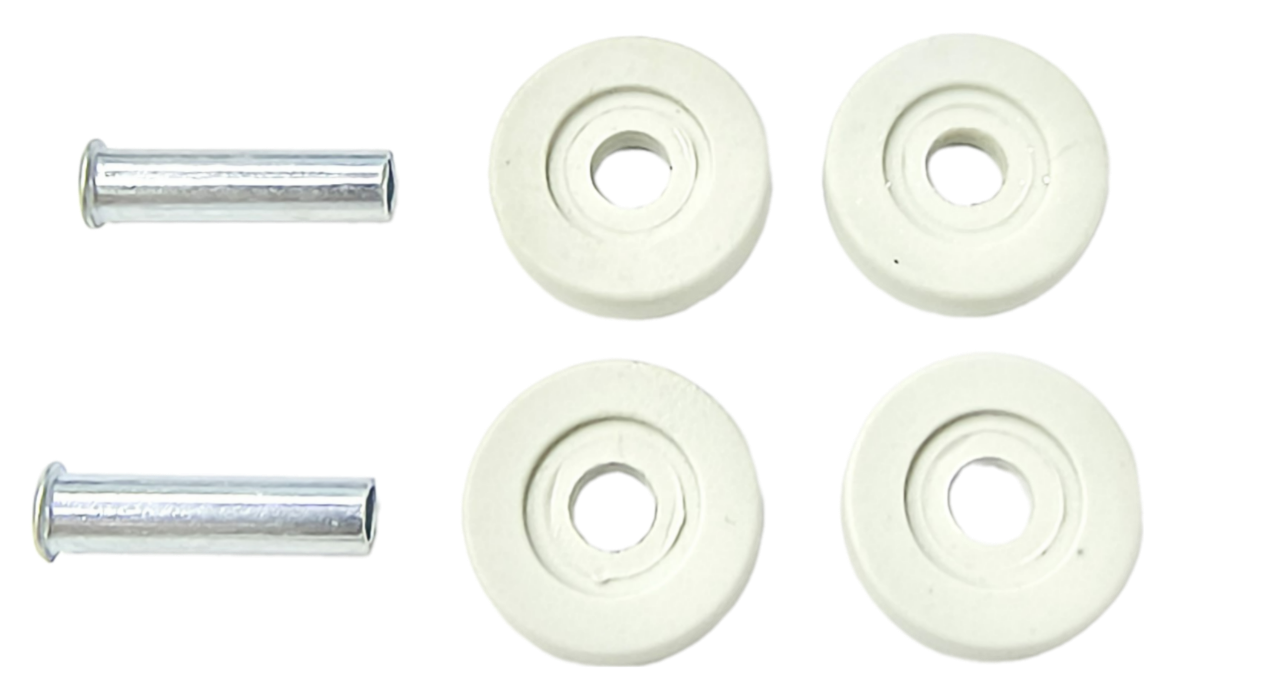 В комплект входит : 4 пластиковых ролика d-15 мм; 2 металлические оси d-4мм, l-16мм.)