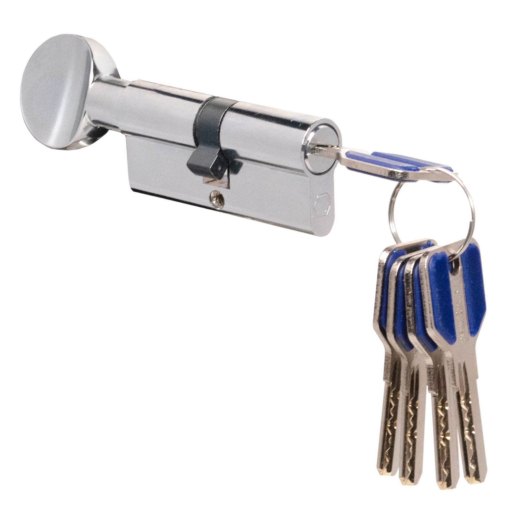 Цилиндровый механизм EZ Личинка 70 с перфорированным ключом, ключ-вертушка (30+10+30) - предназначен для входных и межкомнатных дверей. Личинка для замка изготовлена в соответствии с европейским стандартом. Выполнен механизм из сплава металлов ЦАМ - это высокотехнологичный материал, который на сегодня стал популярен в изготовлении фурнитуры, основным компонентом, которого выступает цинк. Качественными характеристиками сплава ЦАМ являются: - пластичность – что позволяет изготовить точно даже самые мелкие детали. - хорошее сцепление с покрытием – что позволяет легко покрывать изделия гальваническим покрытием, а значит получать не только интересный, но и однородный, долговечный оттенок. - практичность - изделия из ЦАМ практически не подвержены коррозии. Именно этот сплав считается прочным, долговечным и более подходящим, для квартир, домов и офисов. В комплект входит 5 ключей. Цвет: хром