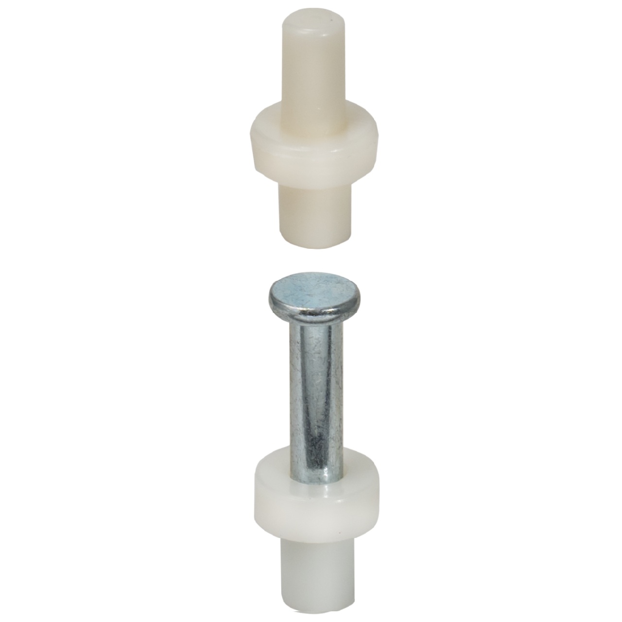 Штифтовая петля 5х30 для металлической мебели. Материал корпуса – белый полиамид, штифт выполнен из рессорной оцинкованной стали.