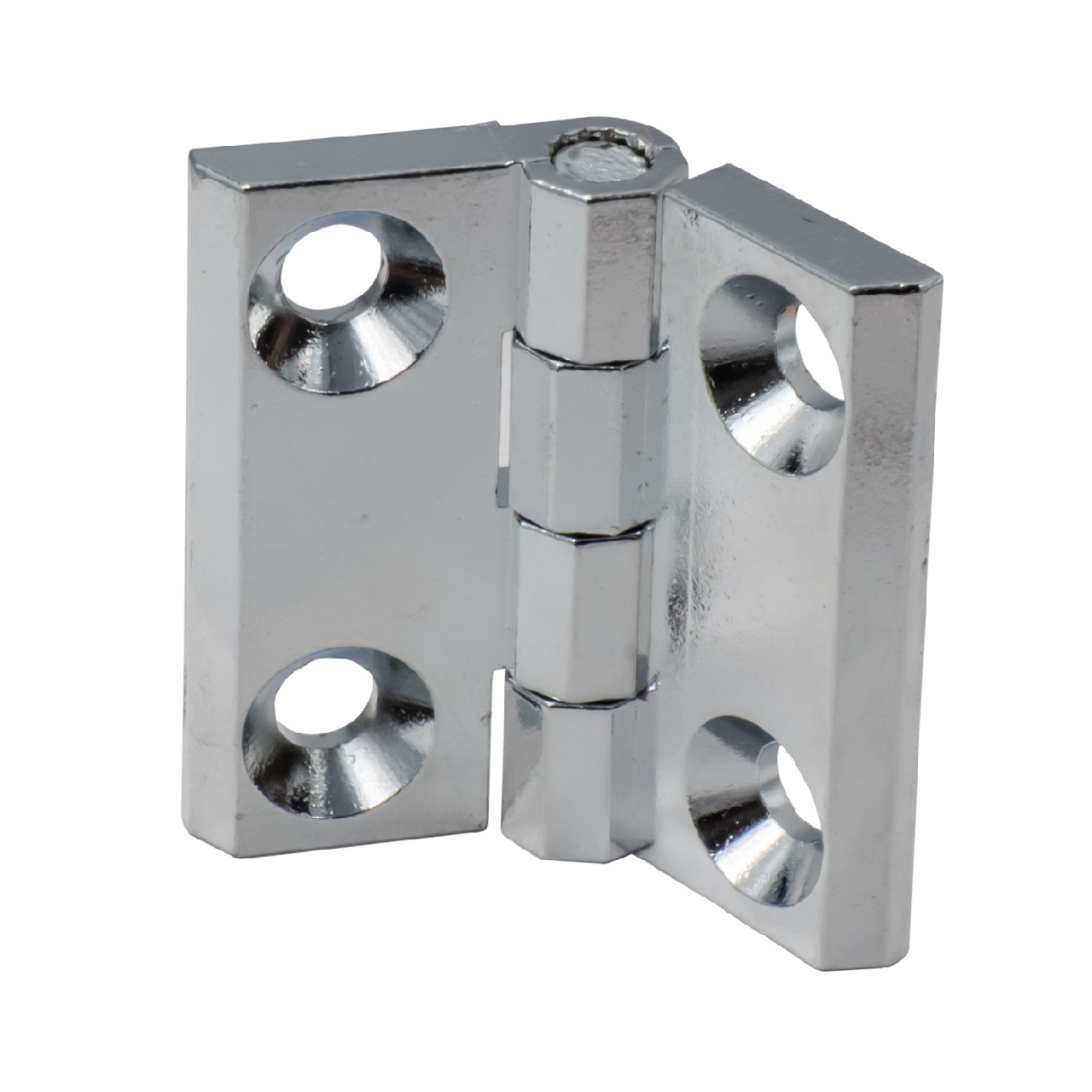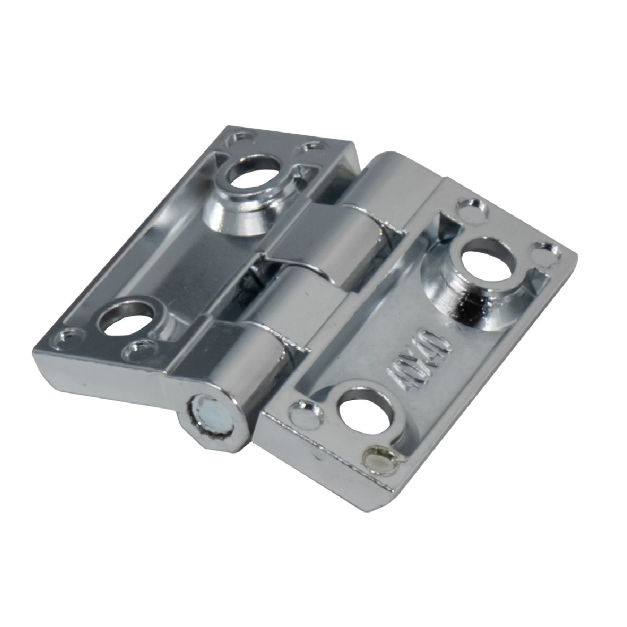 Петля 082 40х40 усиленная для металлической мебели. Материал корпуса – высококачественный сплав металлов ЦАМ (цинк, алюминий, медь), материал штифта - оцинкованная сталь. Цвет - хром. Угол разворота составляет 270 градусов.