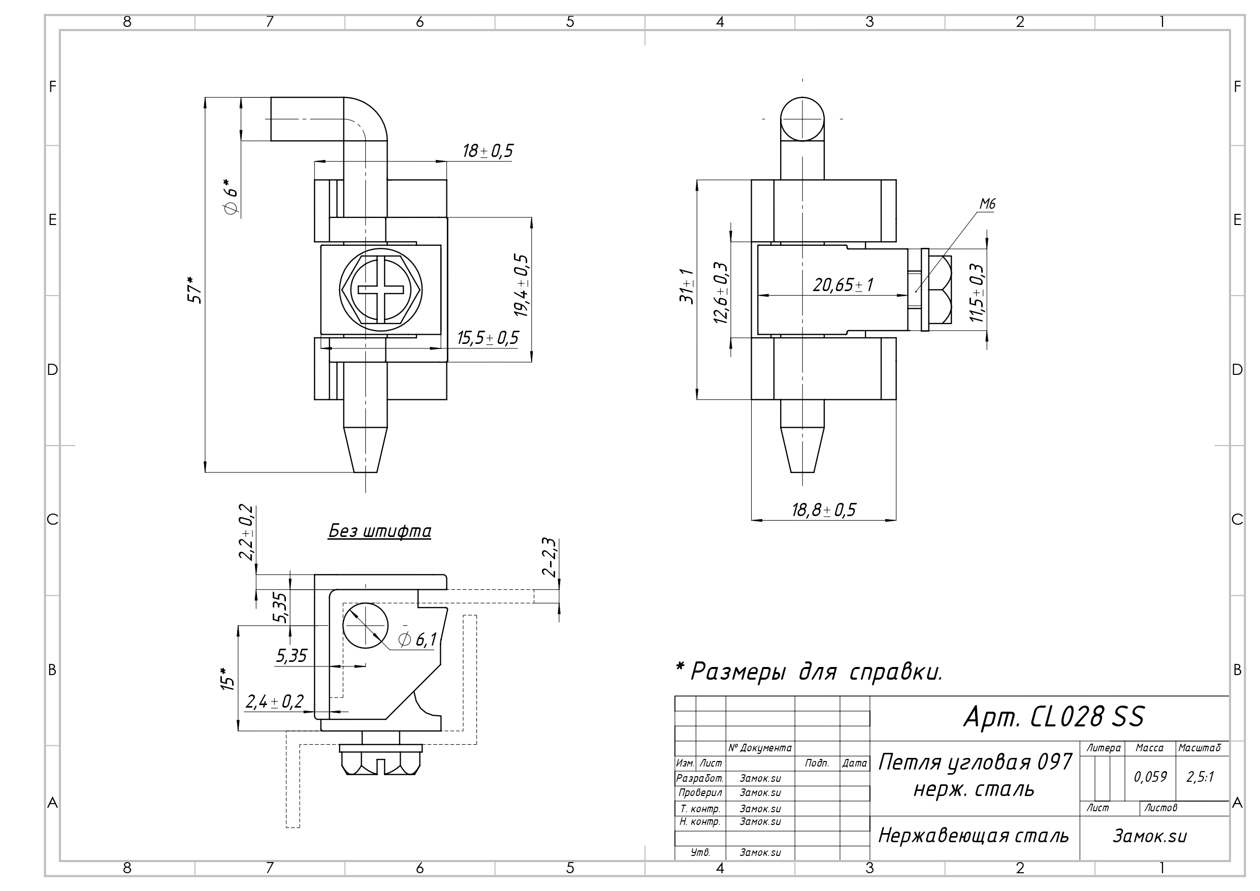 Угловая петля 097 из нержавеющей стали в используется для металлических дверей электрических шкафов, металлической мебели . Штифт выполнен из нержавеющей стали.Угол разворота – 110 градусов. В комплектацию петли так же входит винт, который предназначен именно для этой петли.