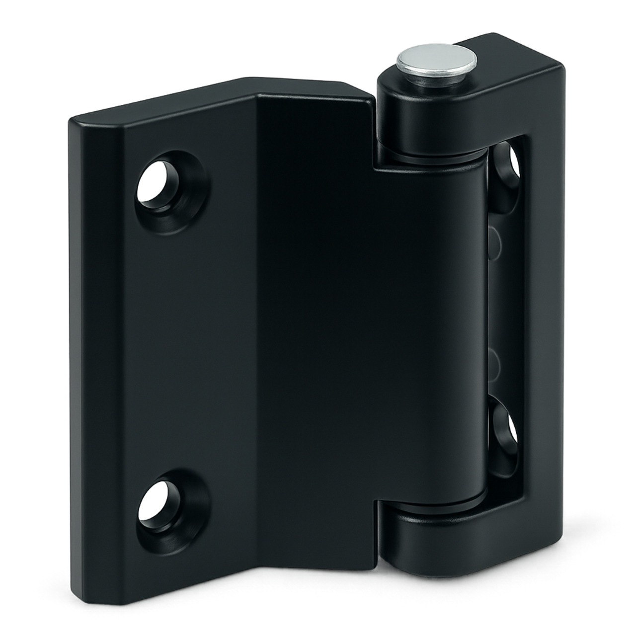 Петля угловая EZ 330, так же известная, как привертная петля предназначена для металлической мебели. Изделие выполнено из прочного сплава металлов ЦАМ в основе которого цинк, алюминий, магний. Штифт и шайба изготовлены из оцинкованной стали. Благодаря этому петля обладает высоким уровнем прочности и служит долгий период времени. Так же в комплекте идут специальные вкладыши из полиамида. Для эффективной защиты от коррозии и негативных внешних факторов, петля покрыта специальным напылением чёрного цвета.