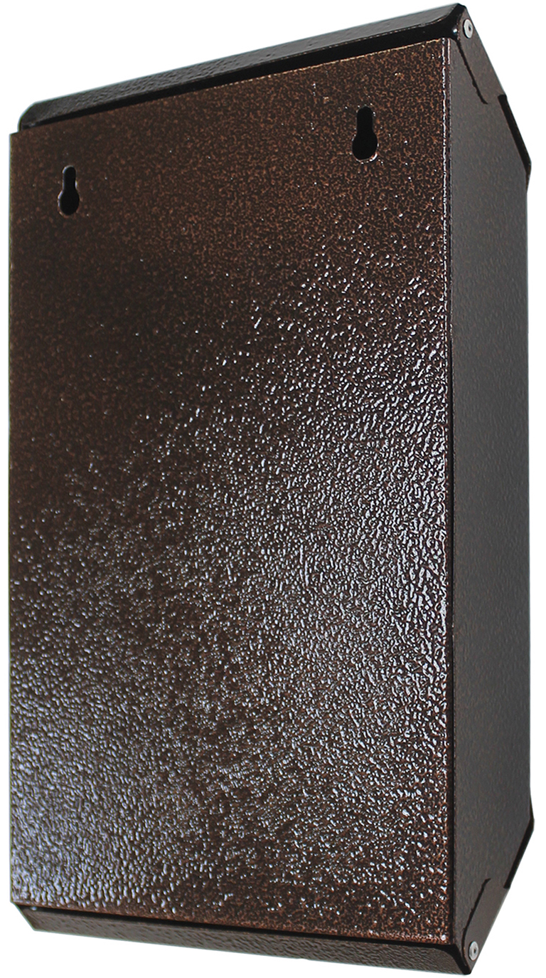 Почтовый ящик со встроенным замком выполнен в виде классического короба с прорезью для корреспонденции. В комплекте идёт два ключа. Специальная крышка воспрепятствует попадание осадков и грязи в секцию с письмами. Полимерно-порошковое покрытие надежно защищает ящик от влияния внешних факторов окружающей среды, сохраняя эстетический вид изделия. Изготовлен почтовый ящик из стали. Толщина стенок составляет 0,6 мм. Отверстия для крепежа расположены на задней стенке ящика.
