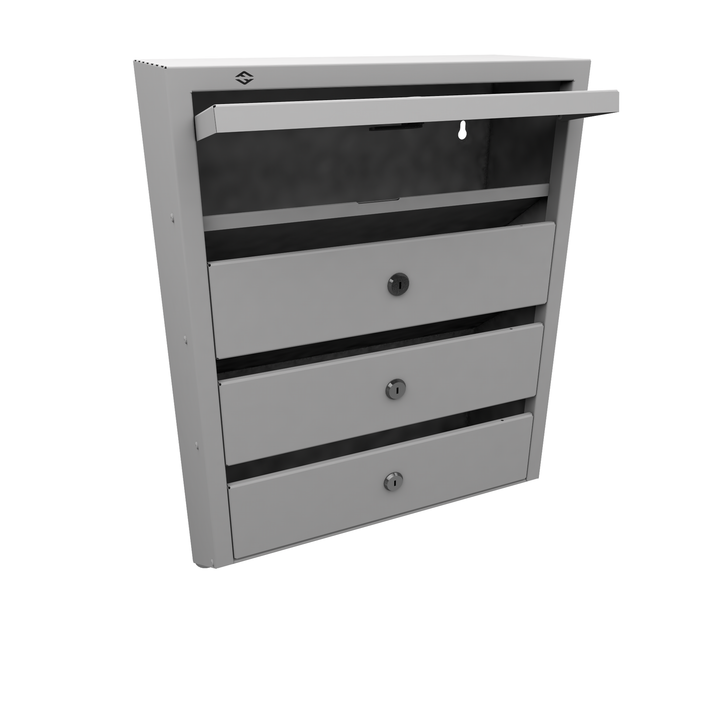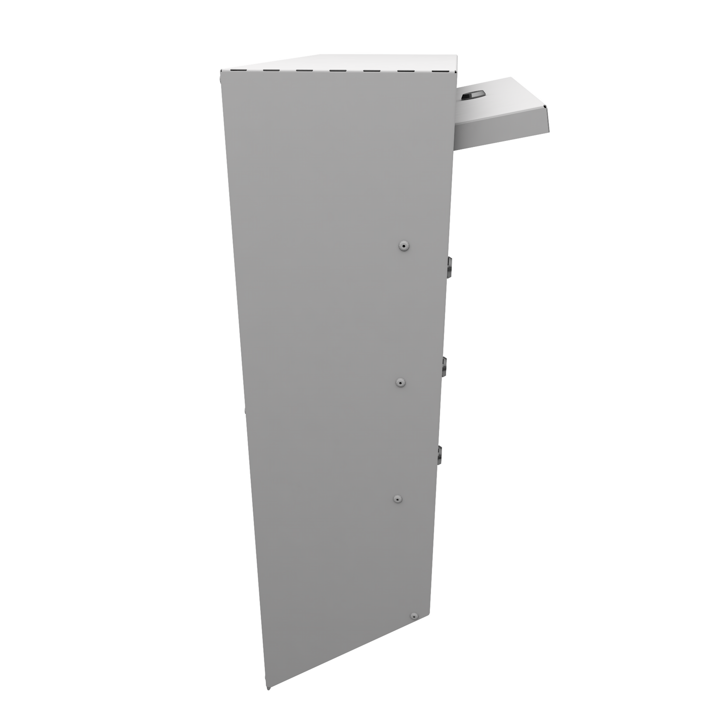 Многосейкционный почтовый ящик часто применяется в многоквартирных домах, офисных или административных зданиях. Ящик содержит 4 отделений для почты (секции), каждое из которых оснащено индивидуальной дверцей. Все отделения располагается под углом 50 градусов. Благодаря этому почтовый ящик выглядит компактно и в тоже время очень вместителен, что позволяет помещать в него и объёмную корреспонденцию так же. Дверца открывается снизу-вверх. Конструкция оснащена задней стенкой, что предотвращает попадание тонких писем в чужие ячейки. На каждой секции установлен секретный замок в комплекте с двумя ключами.