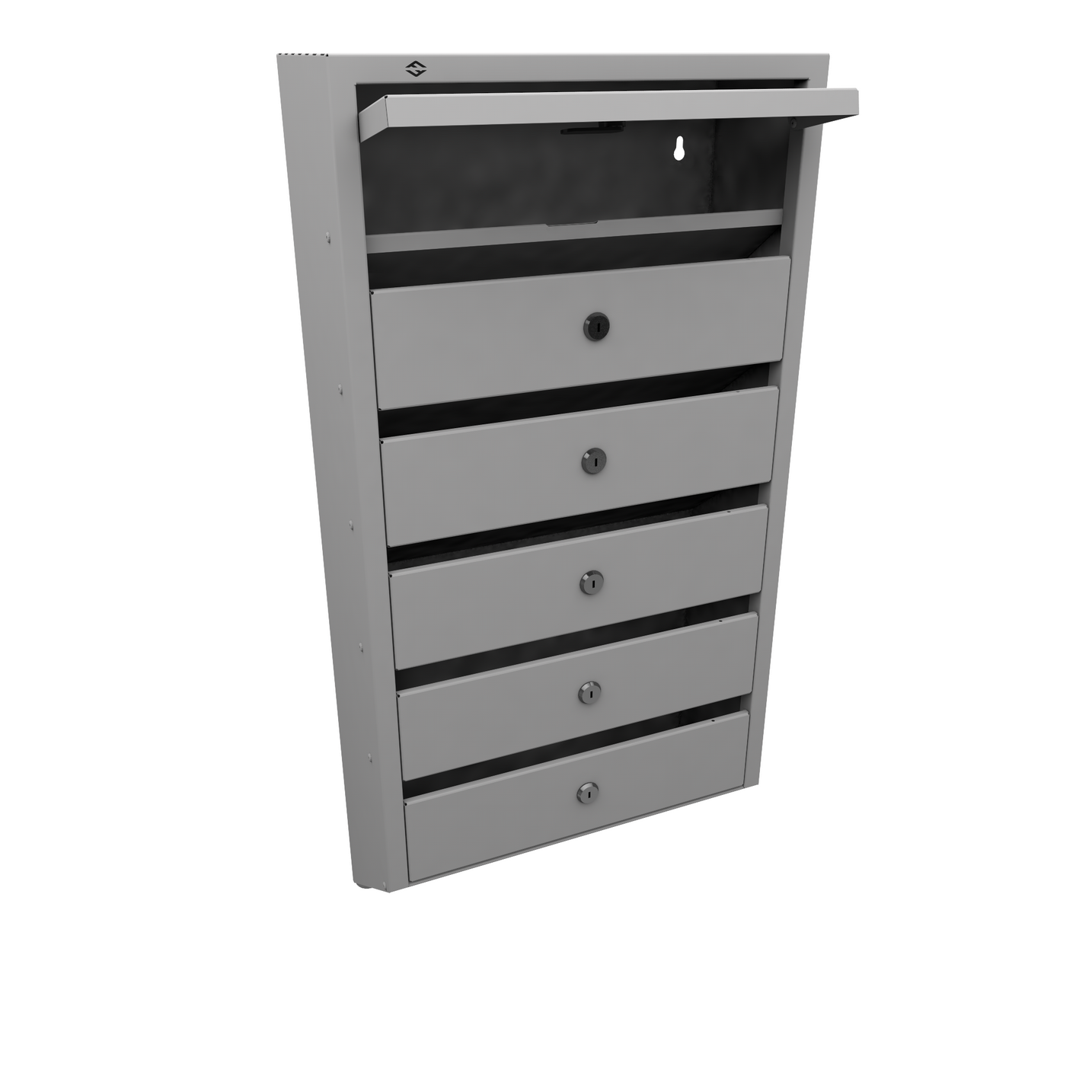 Многосейкционный почтовый ящик часто применяется в многоквартирных домах, офисных или административных зданиях. Ящик содержит 6 отделений для почты (секции), каждое из которых оснащено индивидуальной дверцей. Все отделения располагается под углом 50 градусов. Благодаря этому почтовый ящик выглядит компактно и в тоже время очень вместителен, что позволяет помещать в него и объёмную корреспонденцию так же. Дверца открывается снизу-вверх. Конструкция оснащена задней стенкой, что предотвращает попадание тонких писем в чужие ячейки. На каждой секции установлен секретный замок в комплекте с двумя ключами.