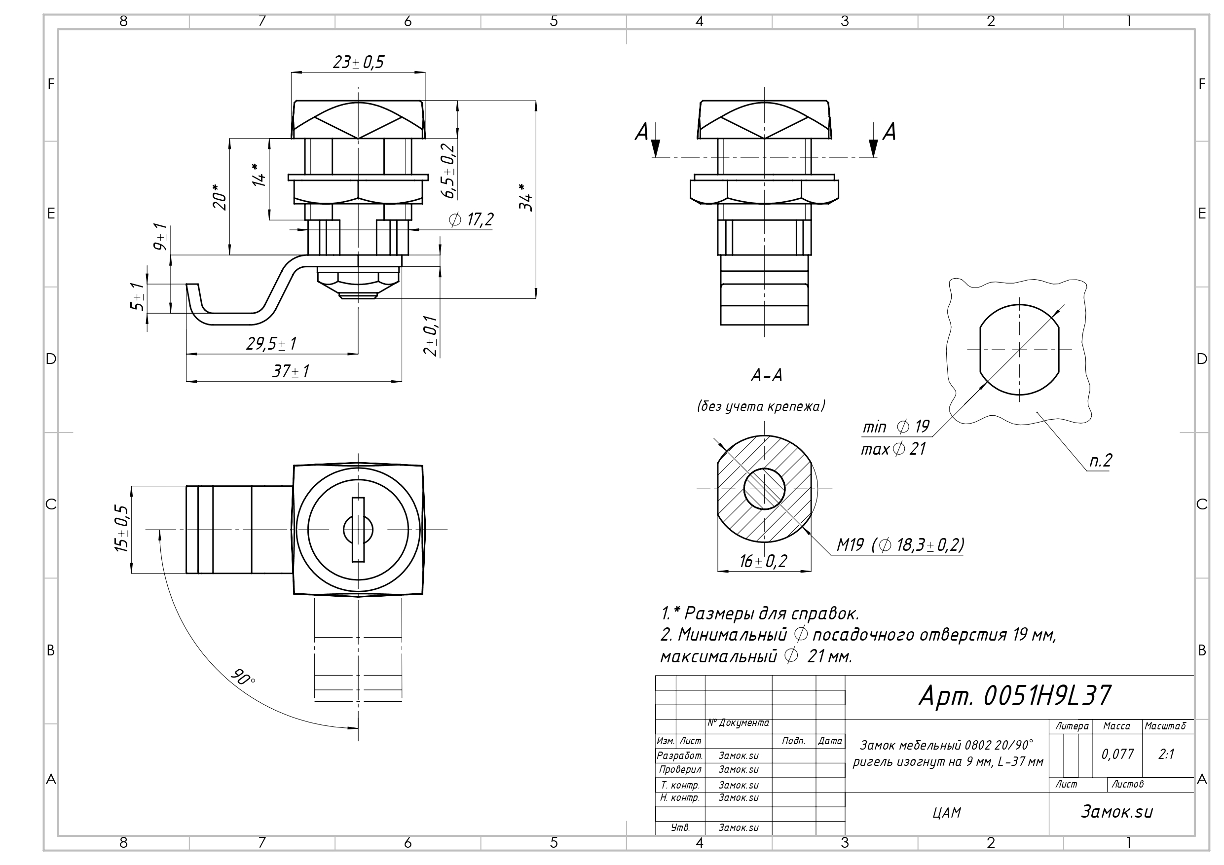 Монтажное отверстие для установки замка: