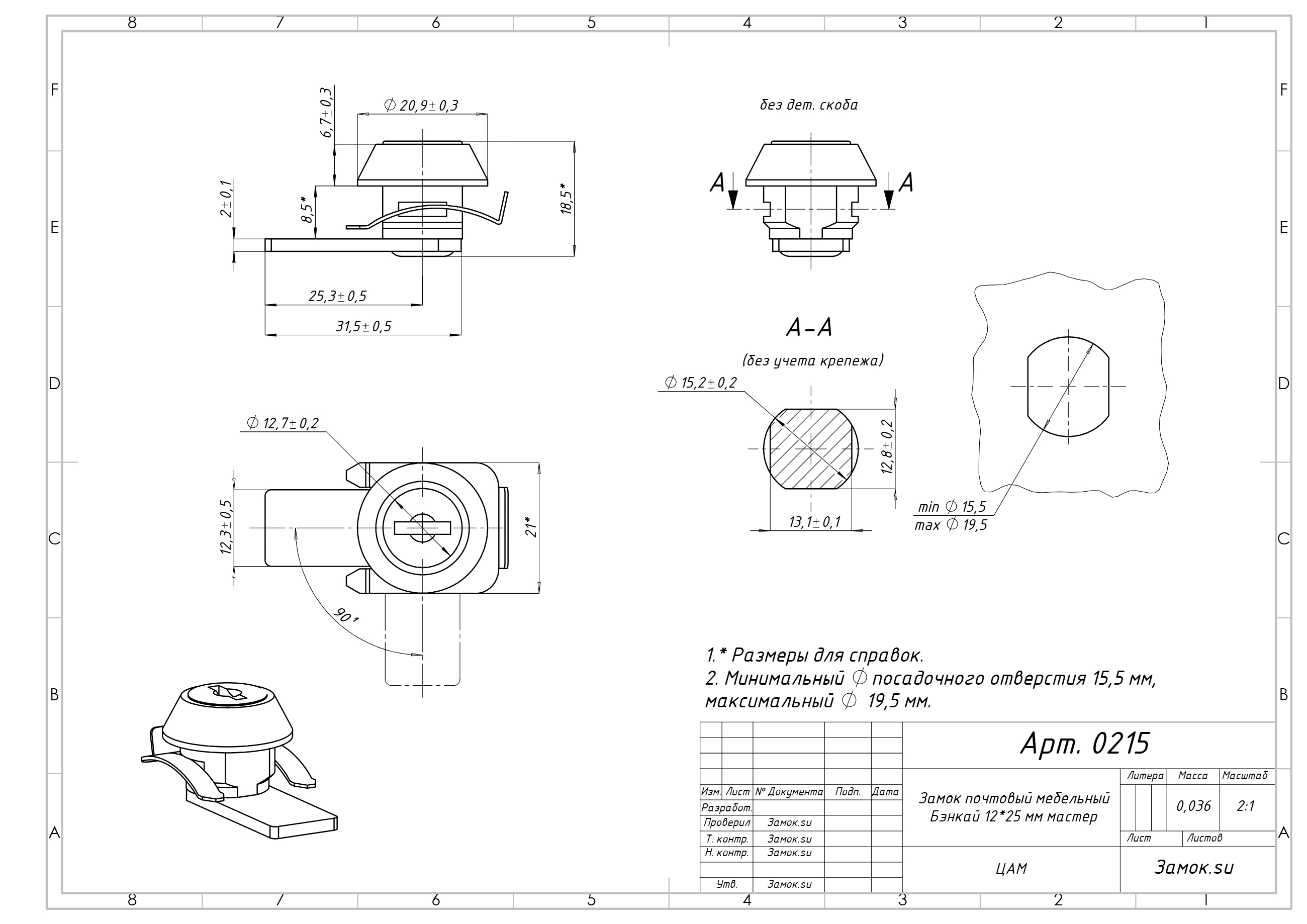 Монтажное отверстие для установки замка: