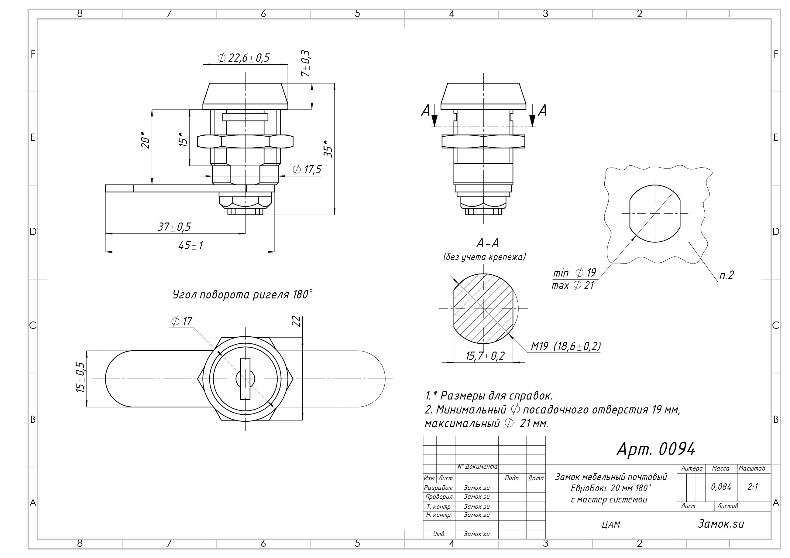 Почтовый, мебельный замок с высокой секретностью. У данной модели тип замка секретный, для каждого замка предназначена пара индивидуальных ключей, которыми можно открыть именно этот замок. Изготовлен замок из высококачетсвенного сплава ЦАМ.