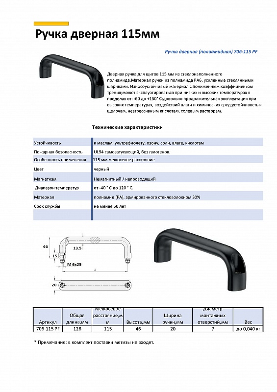 Дверная ручка для щитов 115мм из стеклонаполненного полиамида.