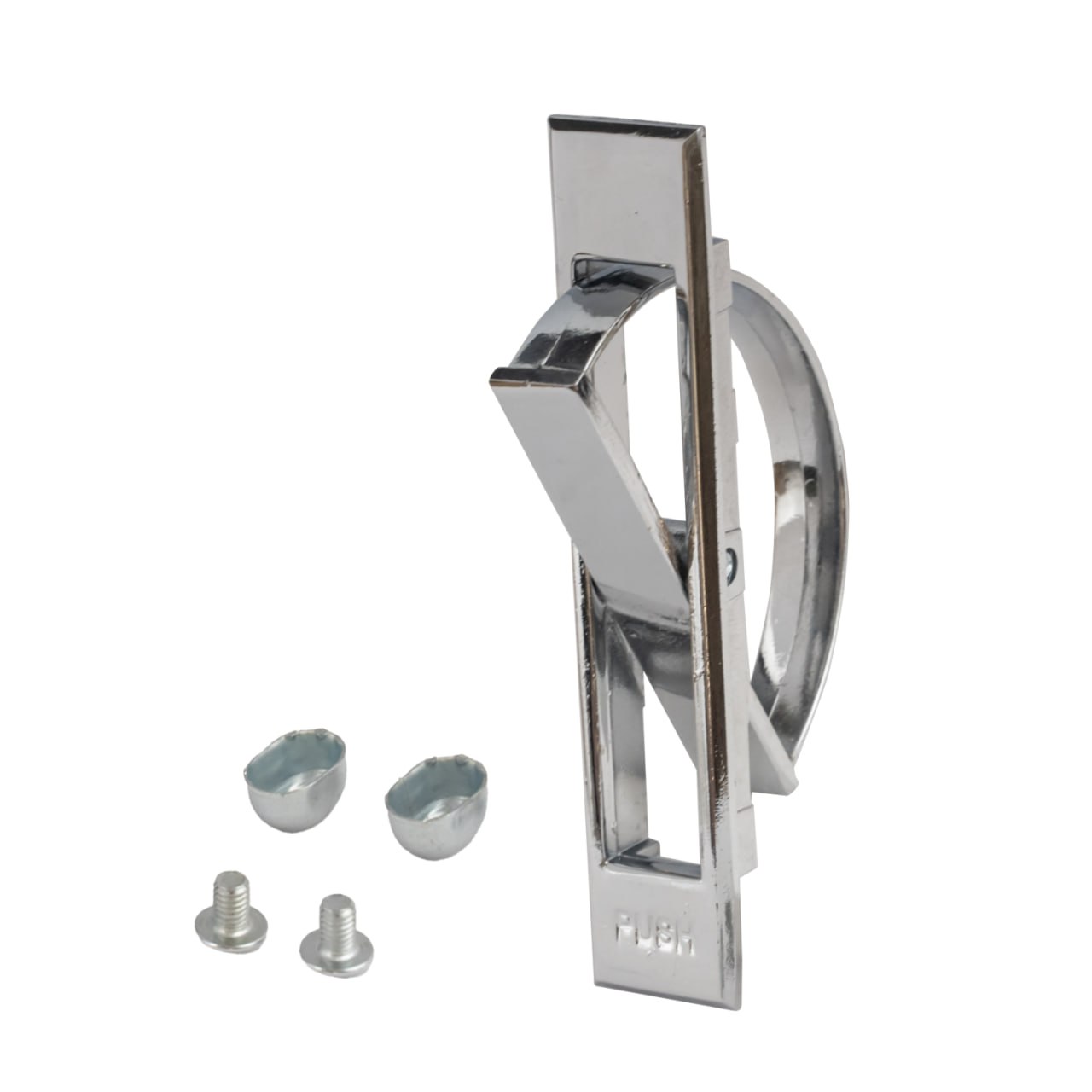 Ручка скрытая поворотная, 180° хром устанавливается в металлическую дверь заподлицо. У данного изделия доступ к ручке осуществляется при нажиме на металлическую плоскую пластину.