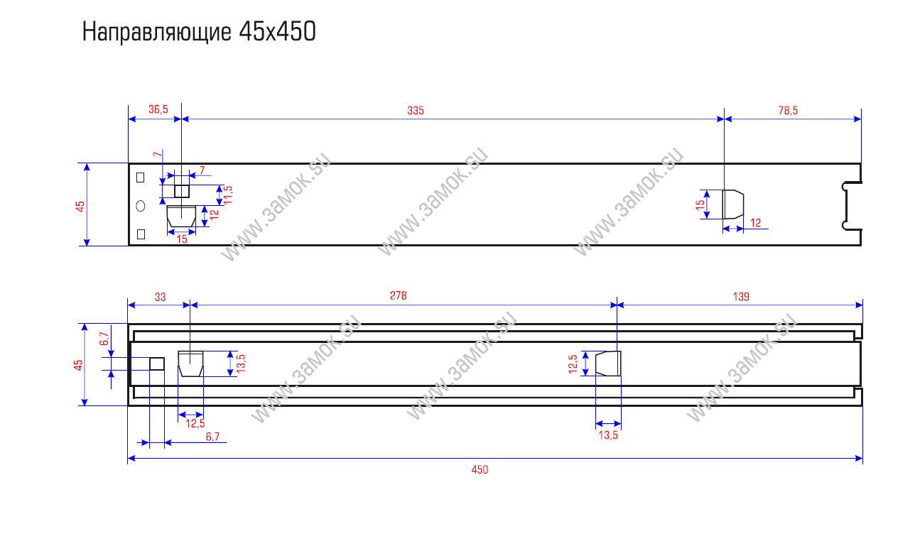 Направляющие шариковые п/в 45х450мм (1,0*1,0*1,2)