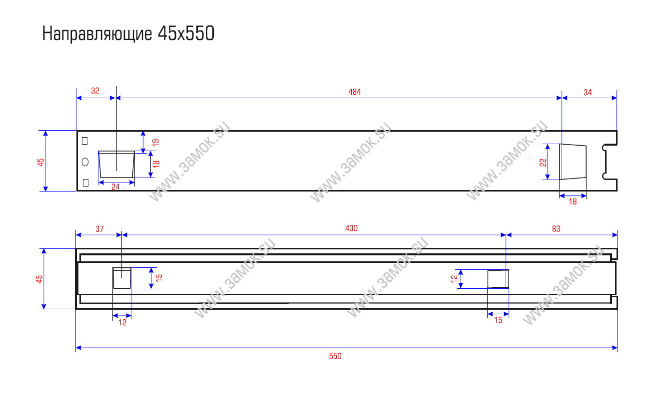 Данная модель предназначена для бокового крепления и имеет на корпусе специальные зацепы, которые защелкиваются в пазы на стенках корпусной мебели, данный вид крепления является очень надежным и не позволит направляющей сдвинуться как по горозантальной, так и по вертикальной осях. Предпочтительнее всего устанавливаются на металлической мебели.