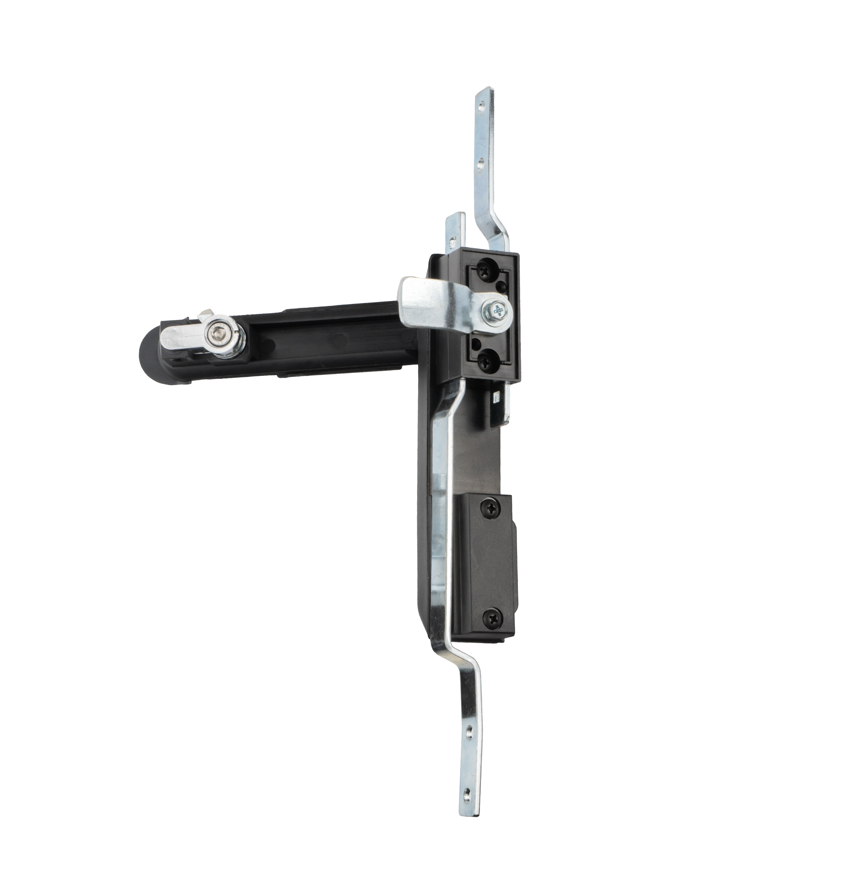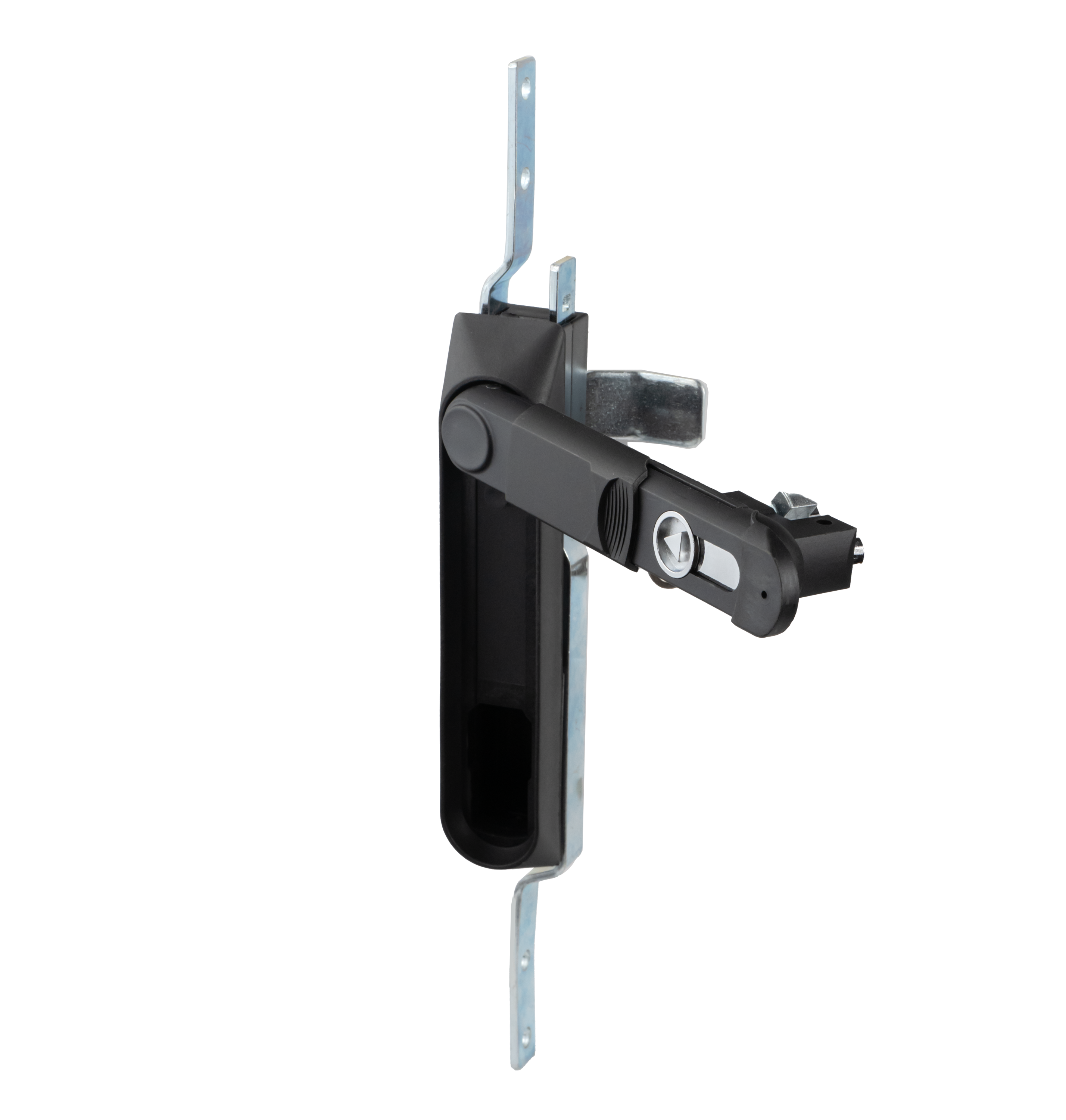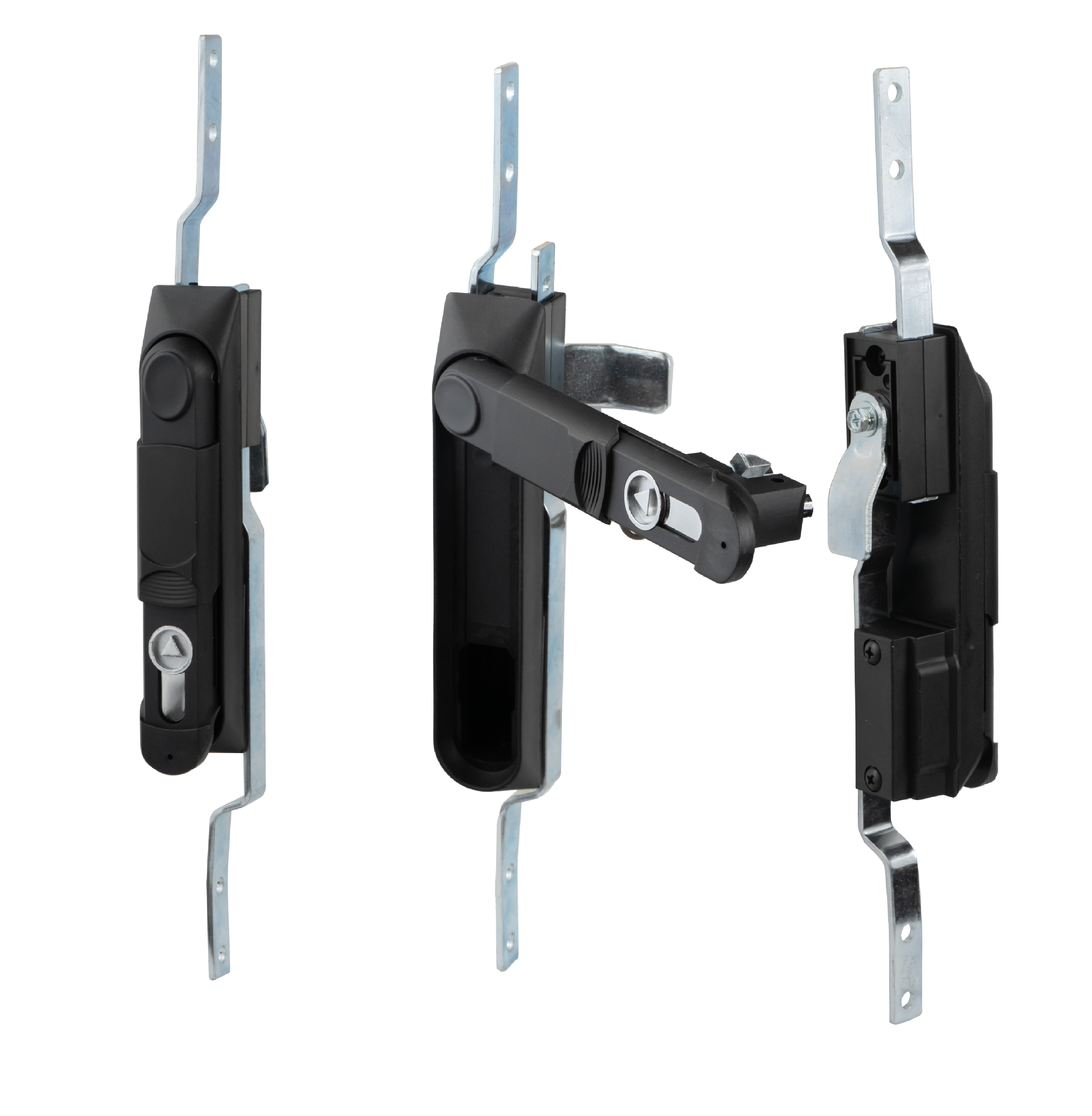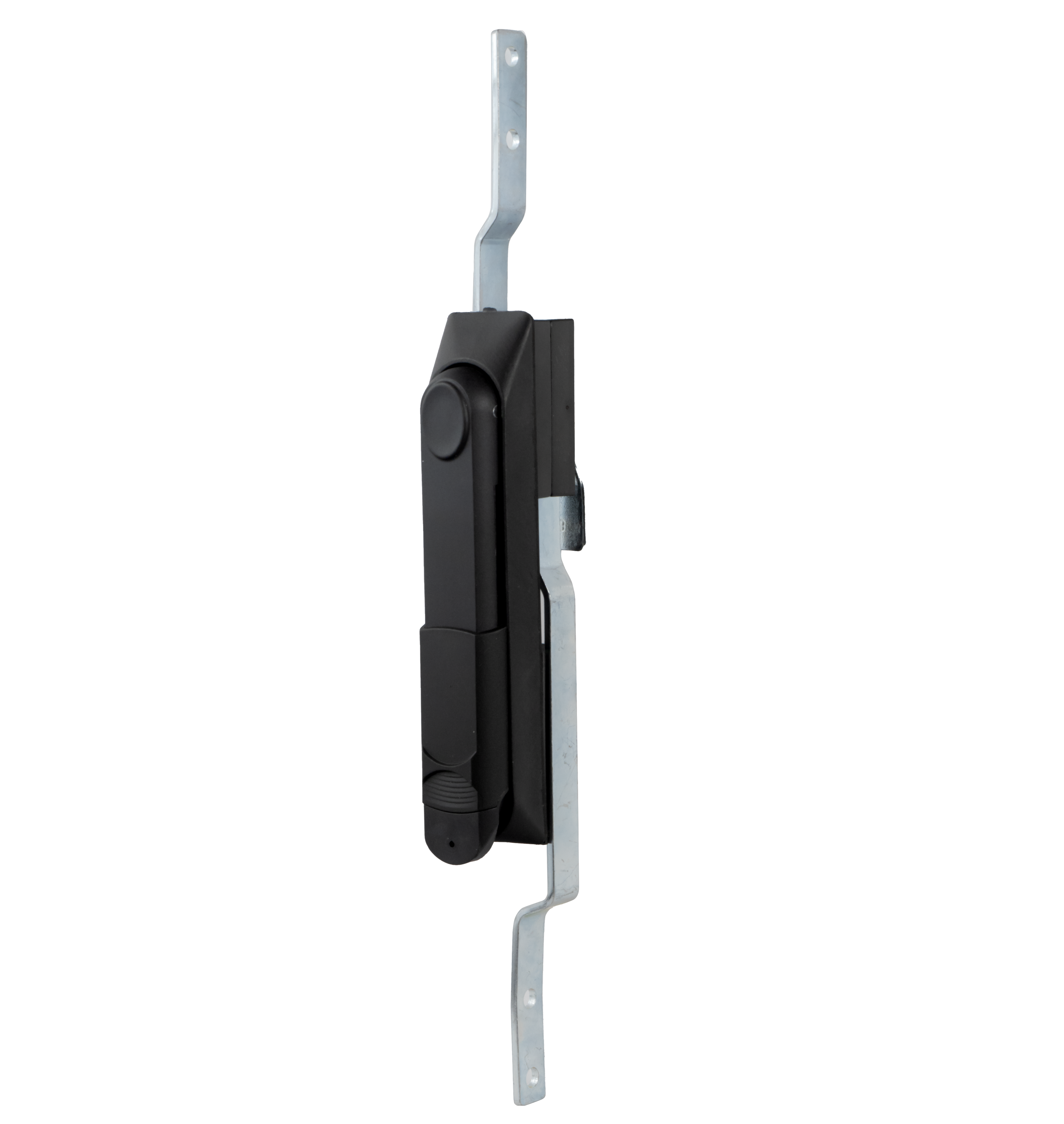 Замок мебельный щитовой с пластиковой ручкой . Устанавливаются на металлические шкафы. Благодаря ручке-трансформеру, которая компактно укладывается в закрытом режиме, замок выглядит эстетично и аккуратно. А дополнительная защитная пластина предотвращает попаданию загрязнений в замочную скважину. Фиксация выполняется в одной точке запирания, а также у данной модели предусмотрены механизм для установки дополнительных тяг. Таким образом, замок выполняет фиксацию в одной точке - при запирании только ригелем, двухточечную фиксацию - при запирании только тягами (сверху и снизу) и комплексную - в 3-х местах (ригель + 2 тяги). Все ключи у данной модели одинаковые, тип "треугольник", это значительно облегчает работу, и позволяет не иметь при себе лишние связки ключей.
