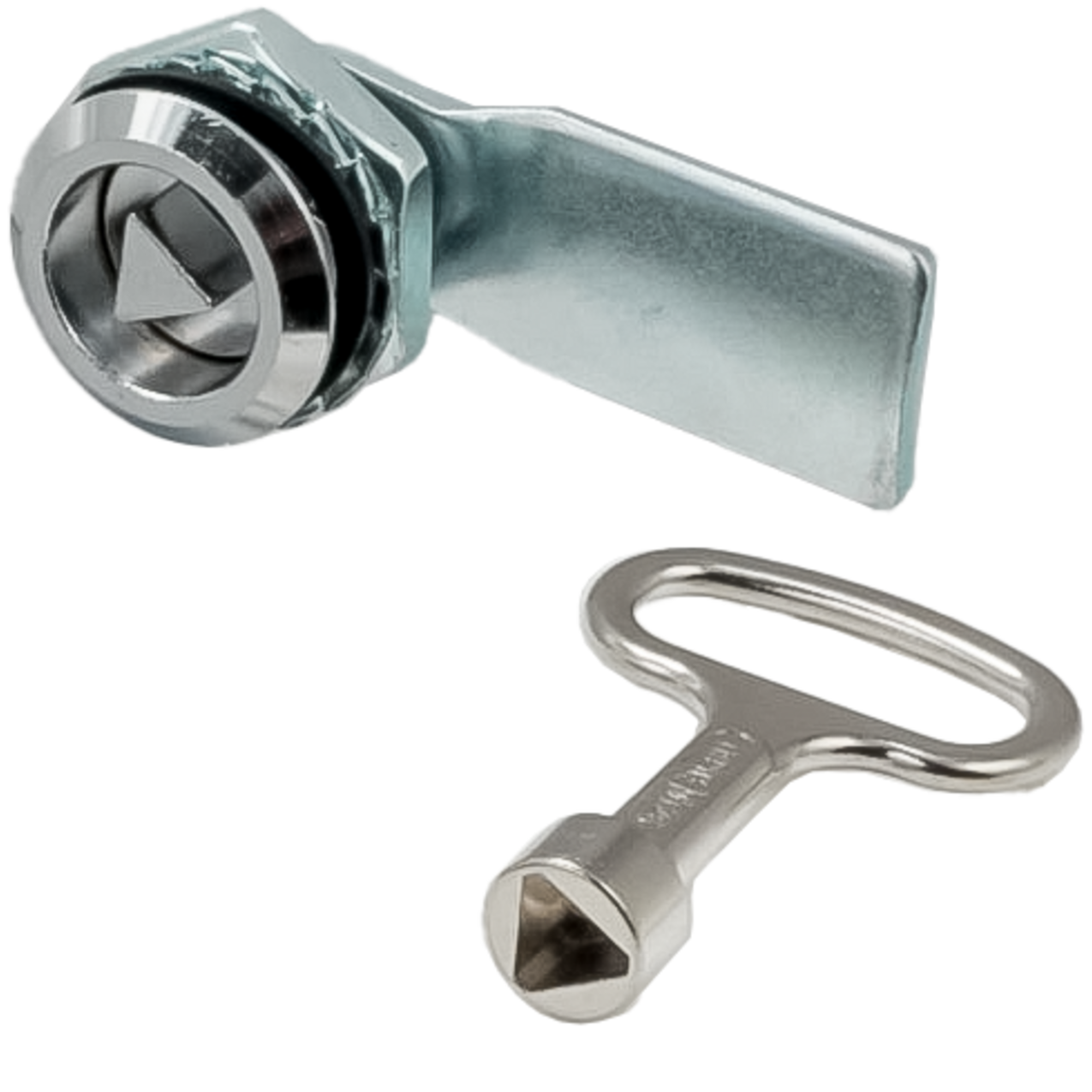 Щитовой замок серии 705 с цельнометаллическим ключом. Имеет два уплотнительных резиновых кольца, внутреннее и внешнее. Внешнее резиновое уплотнительное кольцо, позволяет замку плотно прилегать к поверхности дверцы. Внутреннее уплотнительное кольцо не позволяет пыли и влаге проникать внутрь. Степень защиты замка IP66. У данной модели тип ключа "треугольник", одним ключом можно открыть любой замок данной модели,это значительно облегчает работу обслуживающих компаний, и позволяет не иметь при себе лишние связки ключей.