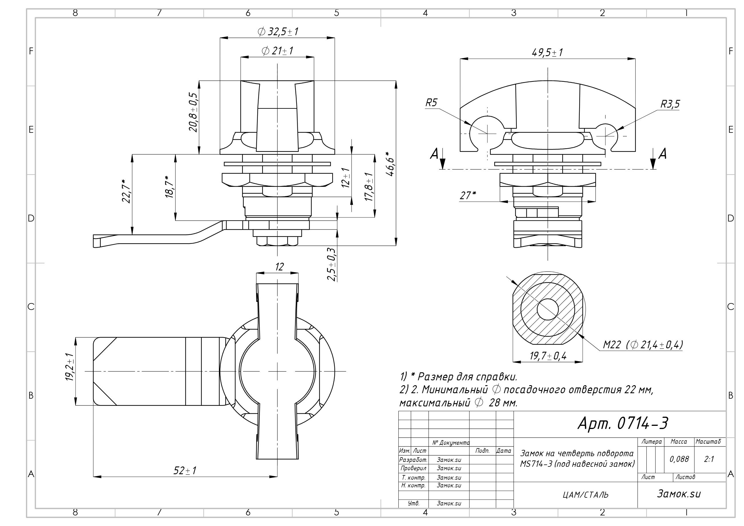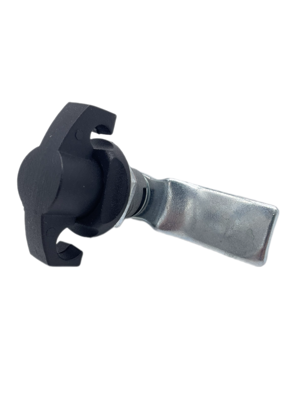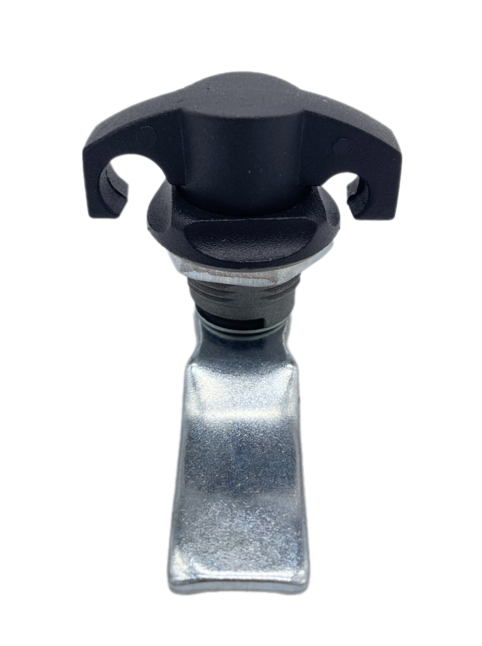 Щитовой замок серии 714 со встроенной ручкой. Имеет два уплотнительных резиновых кольца, внутреннее и внешнее. Внешнее резиновое уплотнительное кольцо, позволяет замку плотно прилегать к поверхности дверцы. Внутреннее уплотнительное кольцо не позволяет пыли и влаге проникать внутрь. Степень защиты замка IP66. У данной модели на корпусе присутсвуют "ушки" для дополнительной установки навесного замка с душкой диаметром 6-7 мм и 9-10 мм.