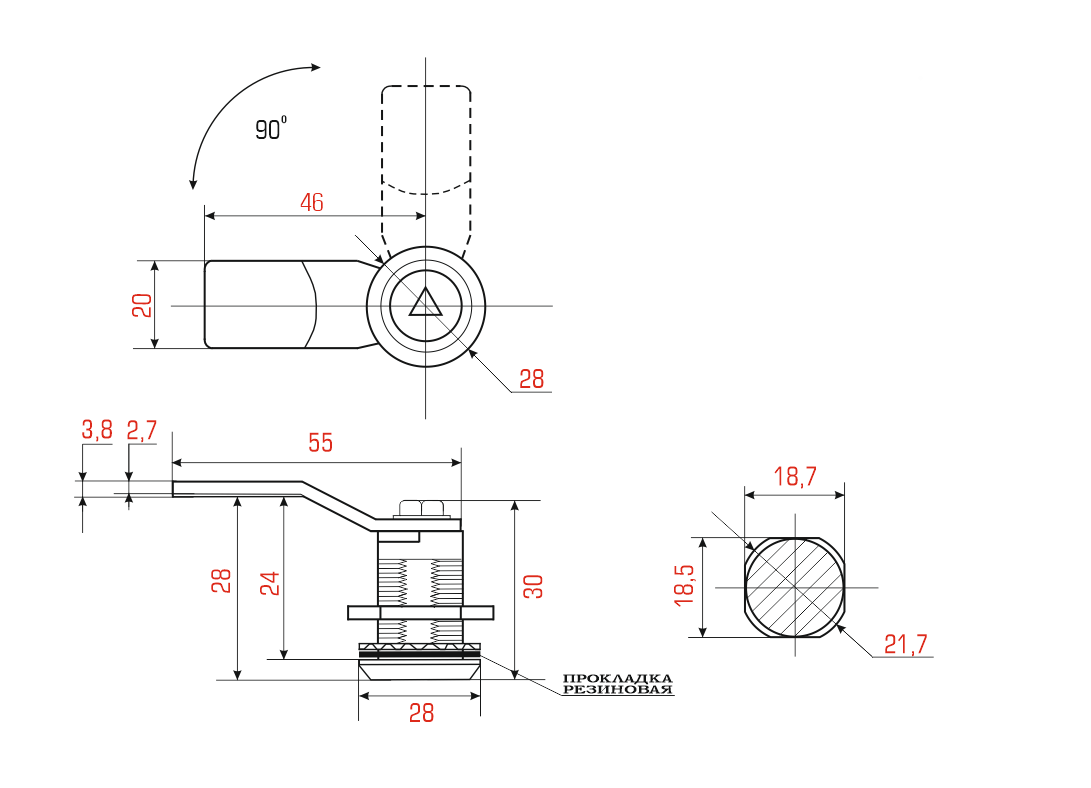 Замок щитовой для металлической мебели MS-705-4 С корпус и ключ пластик