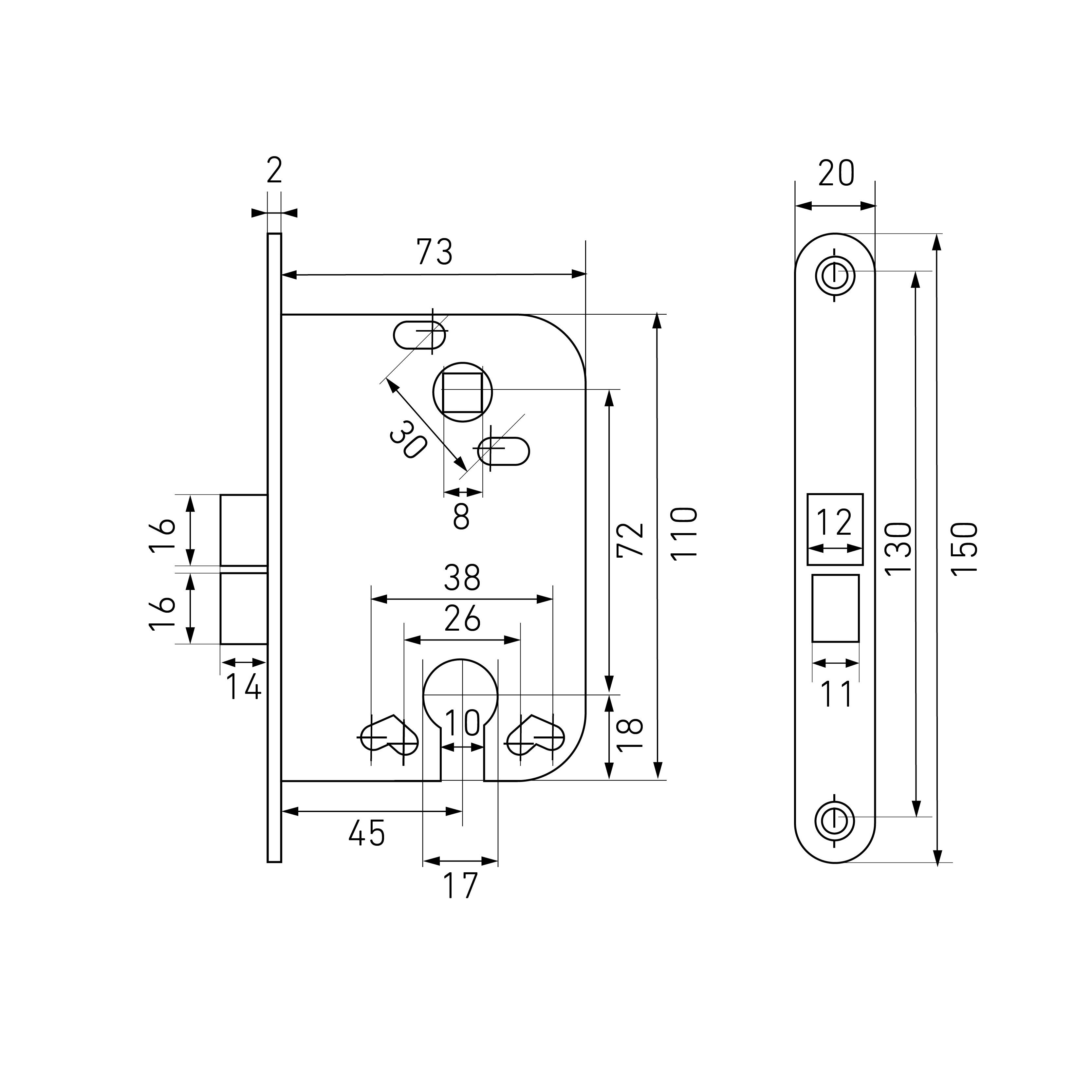 Замок врезной для "финских дверей" с четвертью (притвором).