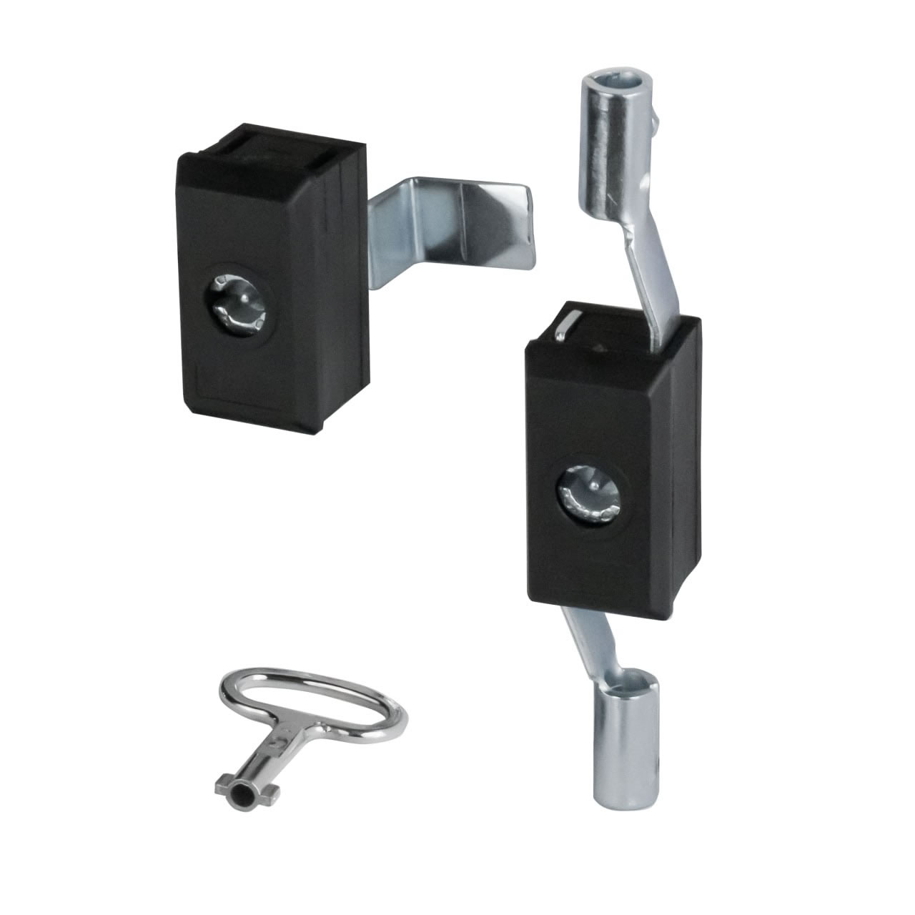 Замок щитовой 103. Устанавливаются на металлические шкафы. Корпус замка изготовлен из высококачественного пластика, а механизм замка и запирающие элементы из металла. В комплекте идут 2 замка с разным методом запирания дверцы: